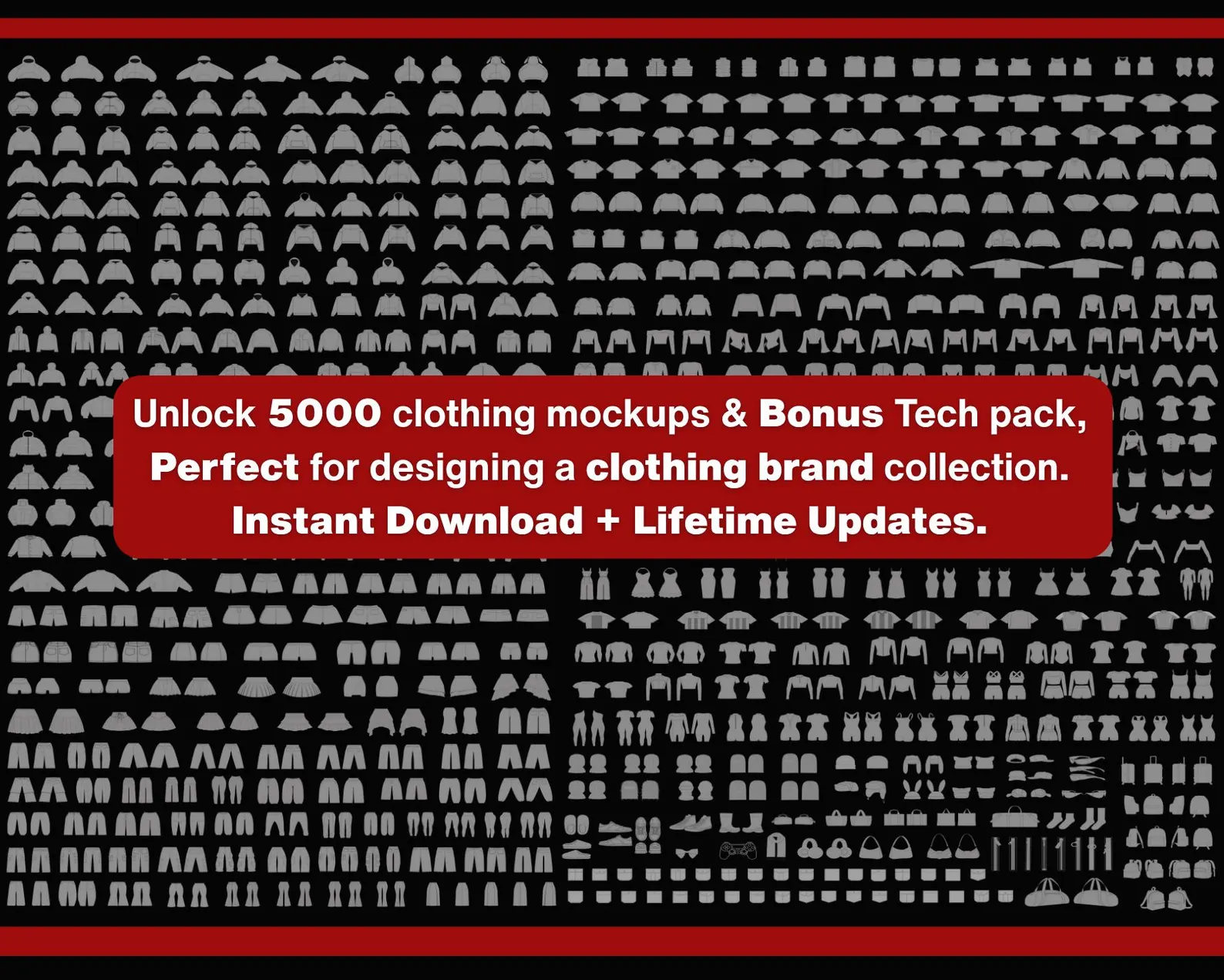 ๐งข 5000X Clothing Mockup Bundle | Ultimate Streetwear Fashion Vector Templates Pack | T-Shirt, Hoodie, Sweats Mockups | AI, PNG, SVG