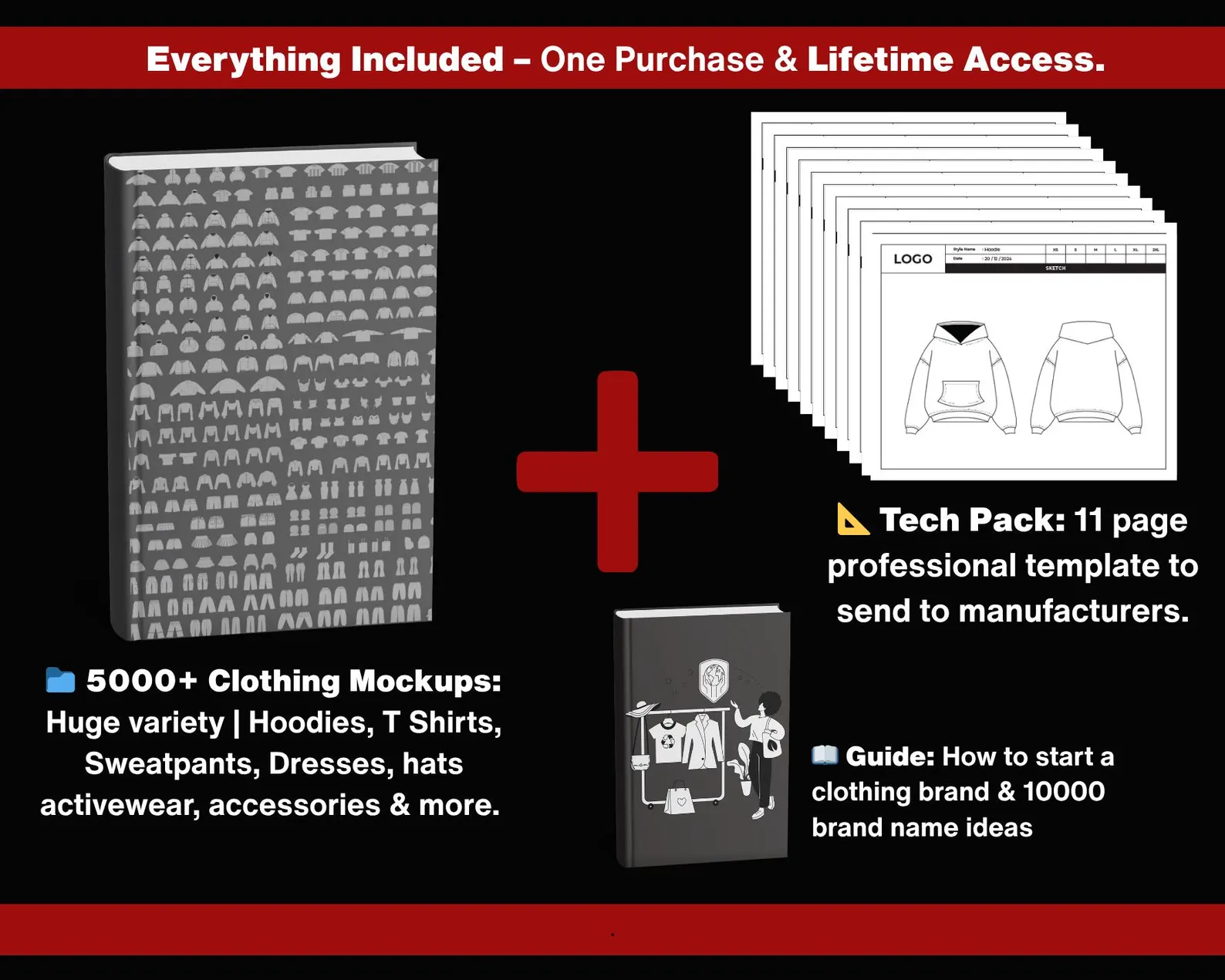 ๐ BONUS: Tech Pack Template, 10,000+ Clothing Brand Names, Clothing Brand Starter Guide