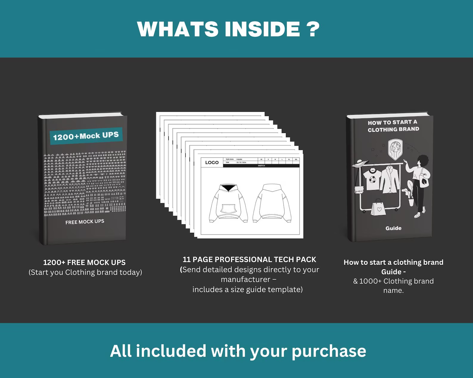 This bundle includes 1500+ fully editable clothing mockups, a professional tech pack, and everything you need to launch or grow your brand today!
